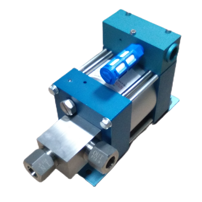利用压缩空气驱动大活塞从而产生小活塞端的高压液压油。